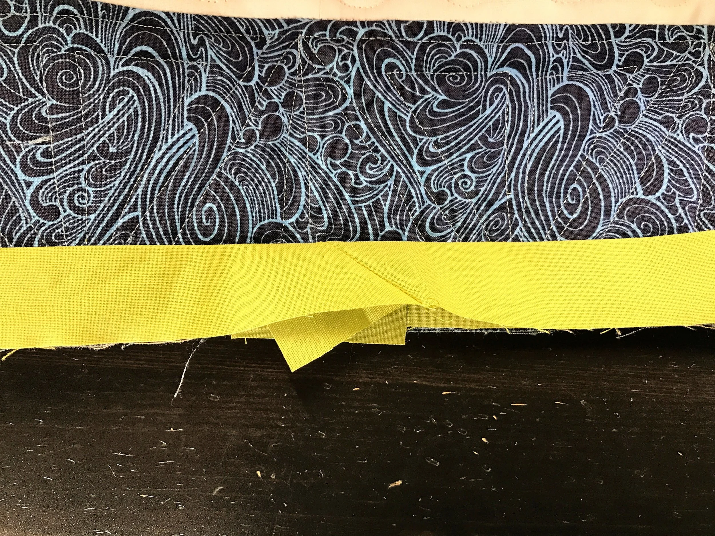 Zuletzt werden die beiden miteinander verbundenen Enden an den Quilt mit 0,25'' Nahtzugabe angenäht...