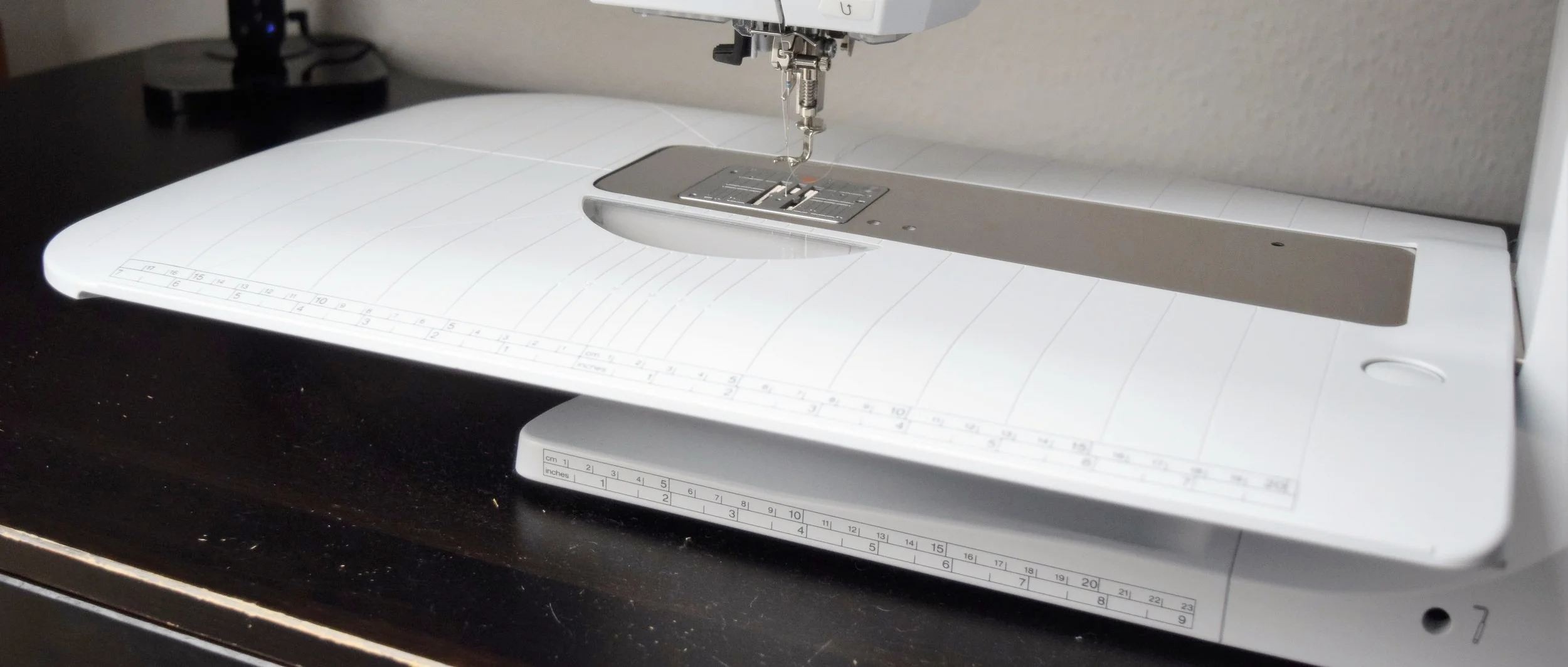 Den Supreme Slider gibt es in zwei Größen. Ich besitze die Standard-Größe (knapp 29,5 x 20,5 cm), es ist jedoch auch noch ein Supreme Slider in Queen-Size erhältlich. Ich kann ihn Euch empfehlen, falls Euer Anschiebetisch nicht rutschig genug ist und/ oder falls sich bei Eurer Maschine der Unterstoff-Transport nicht versenken lässt (der Supreme Slider deckt diesen ab). Ich hatte ihn für meine alte Maschine gekauft, da deren Anschiebetisch nicht rutschig genug war. Inzwischen würde ich ihn mir vermutlich nicht mehr unbedingt kaufen, da der Tisch meiner jetzigen Maschine relativ glatt ist und ich kaum einen Unterschied bemerke, wenn ich mal vergesse, ihn unterzulegen.