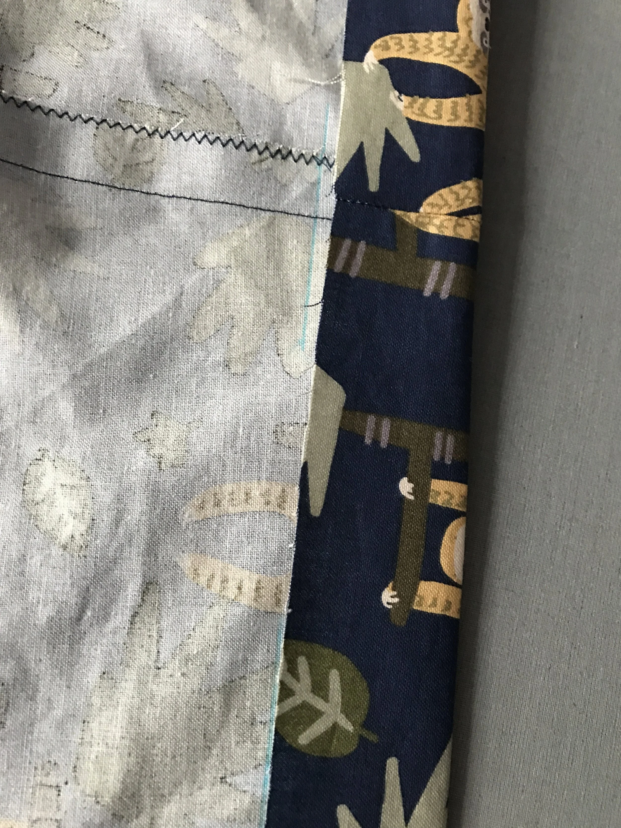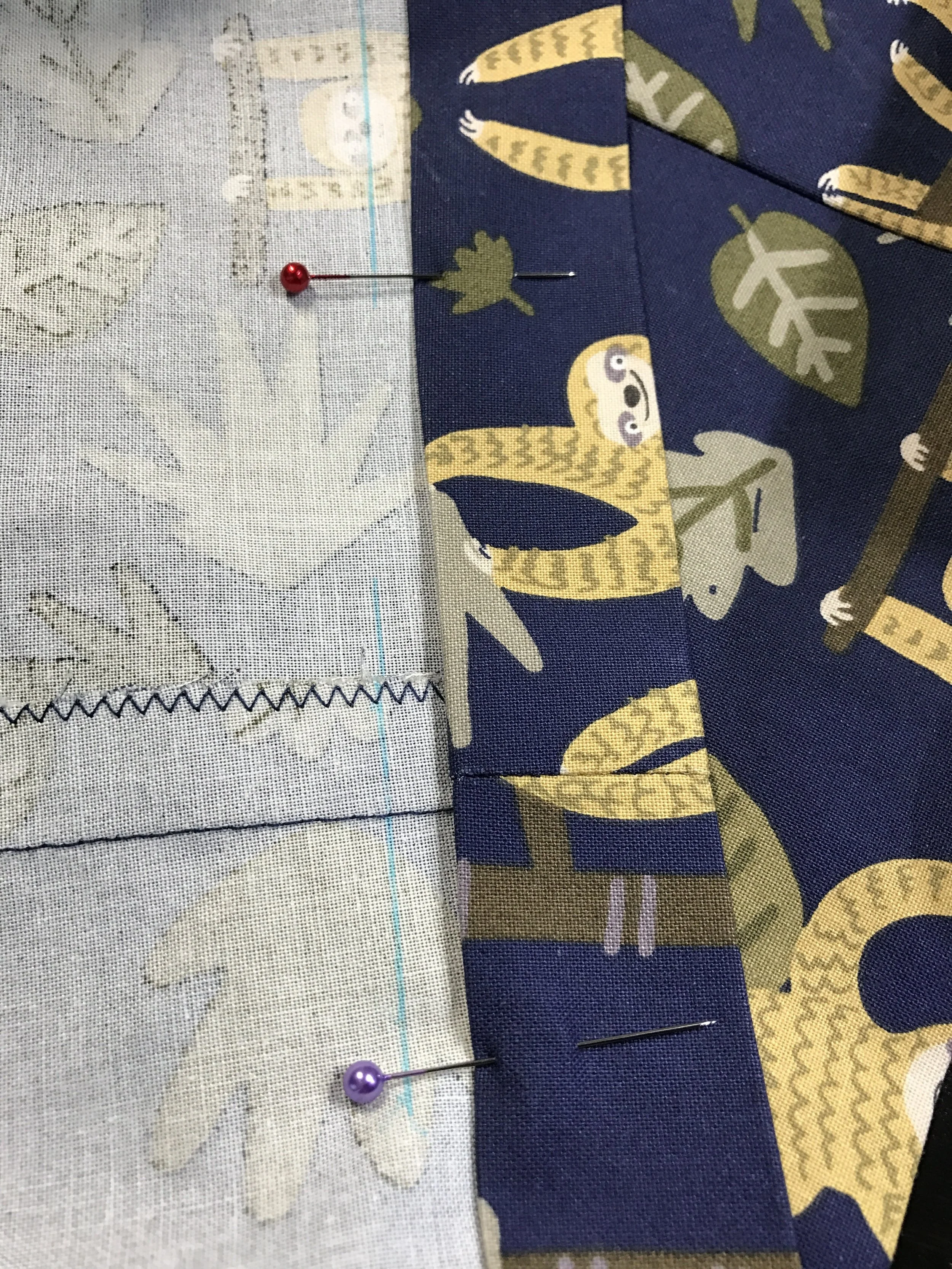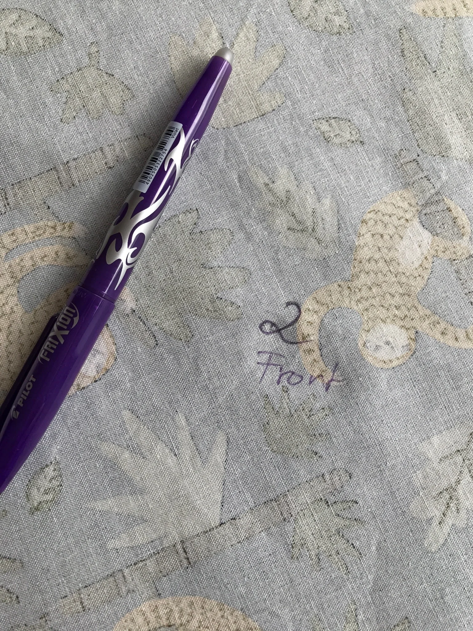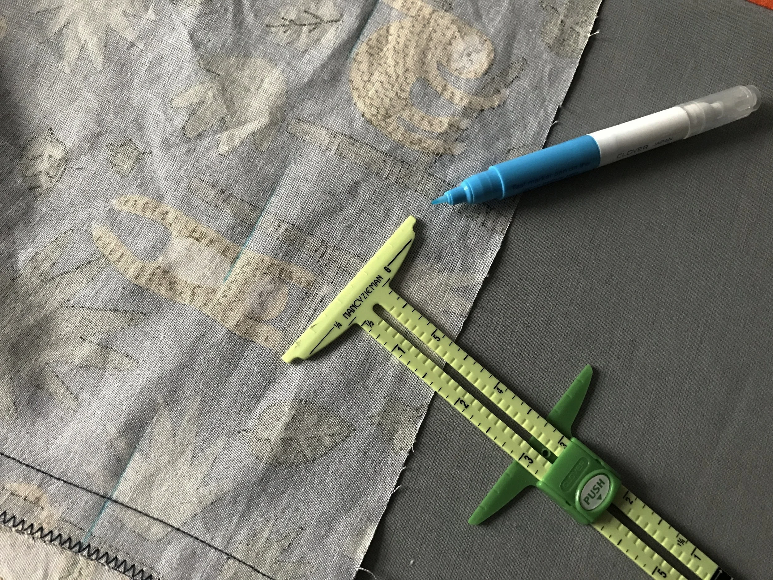 Ich habe hier wieder meinen Trick zum Umbügeln von Säumen verwendet, den ich oben erklärt habe. Deshalb seht Ihr hier die hellblauen Markierungen.