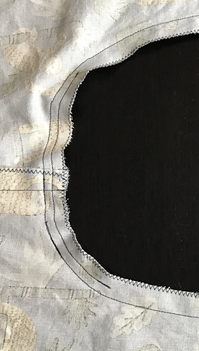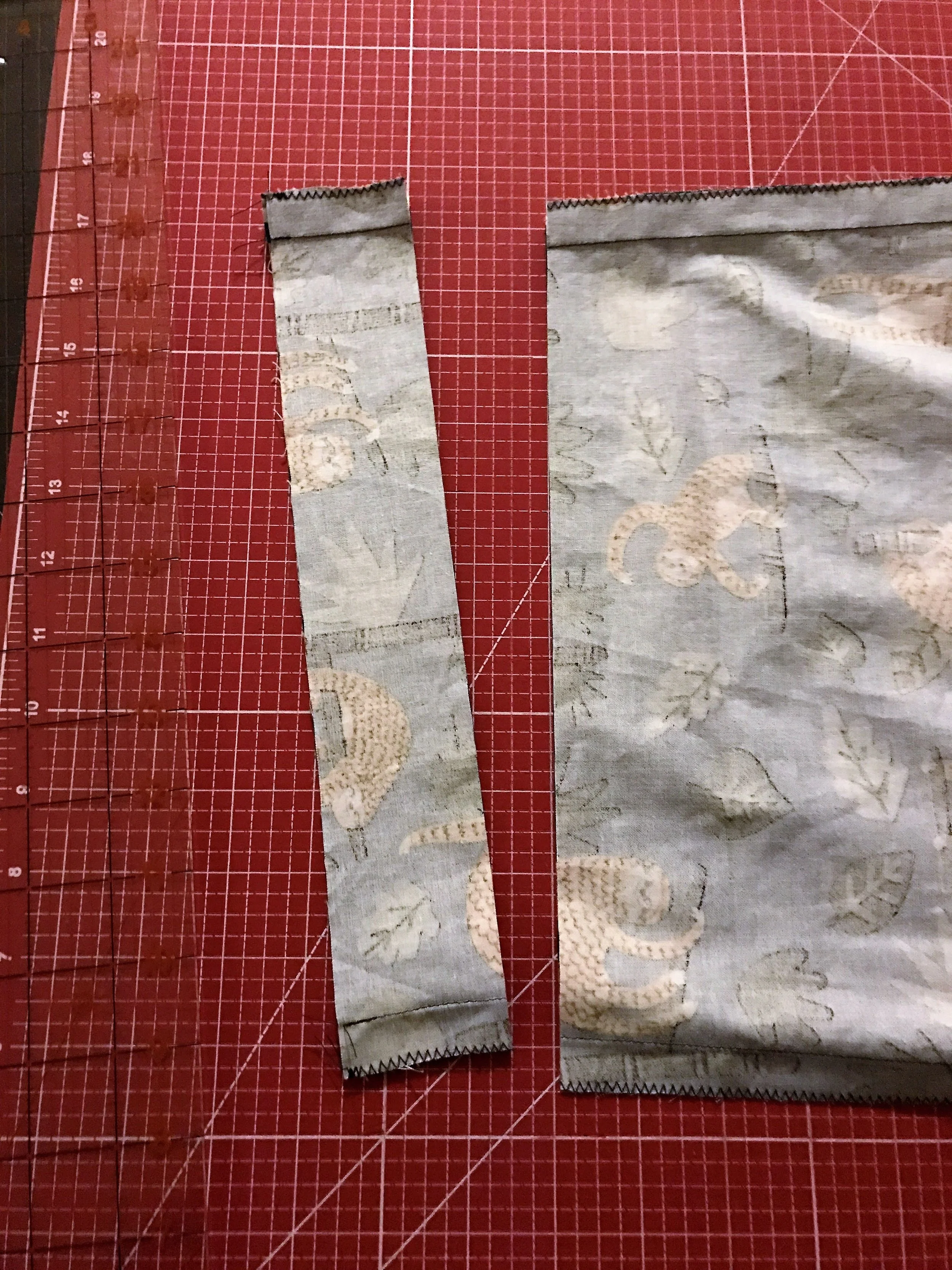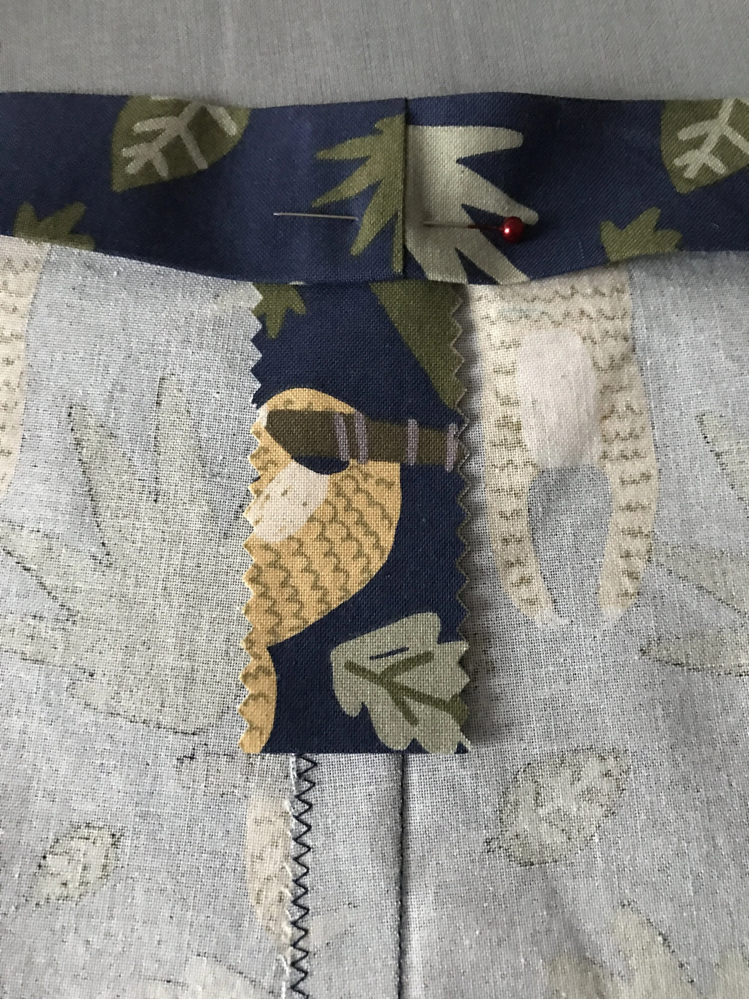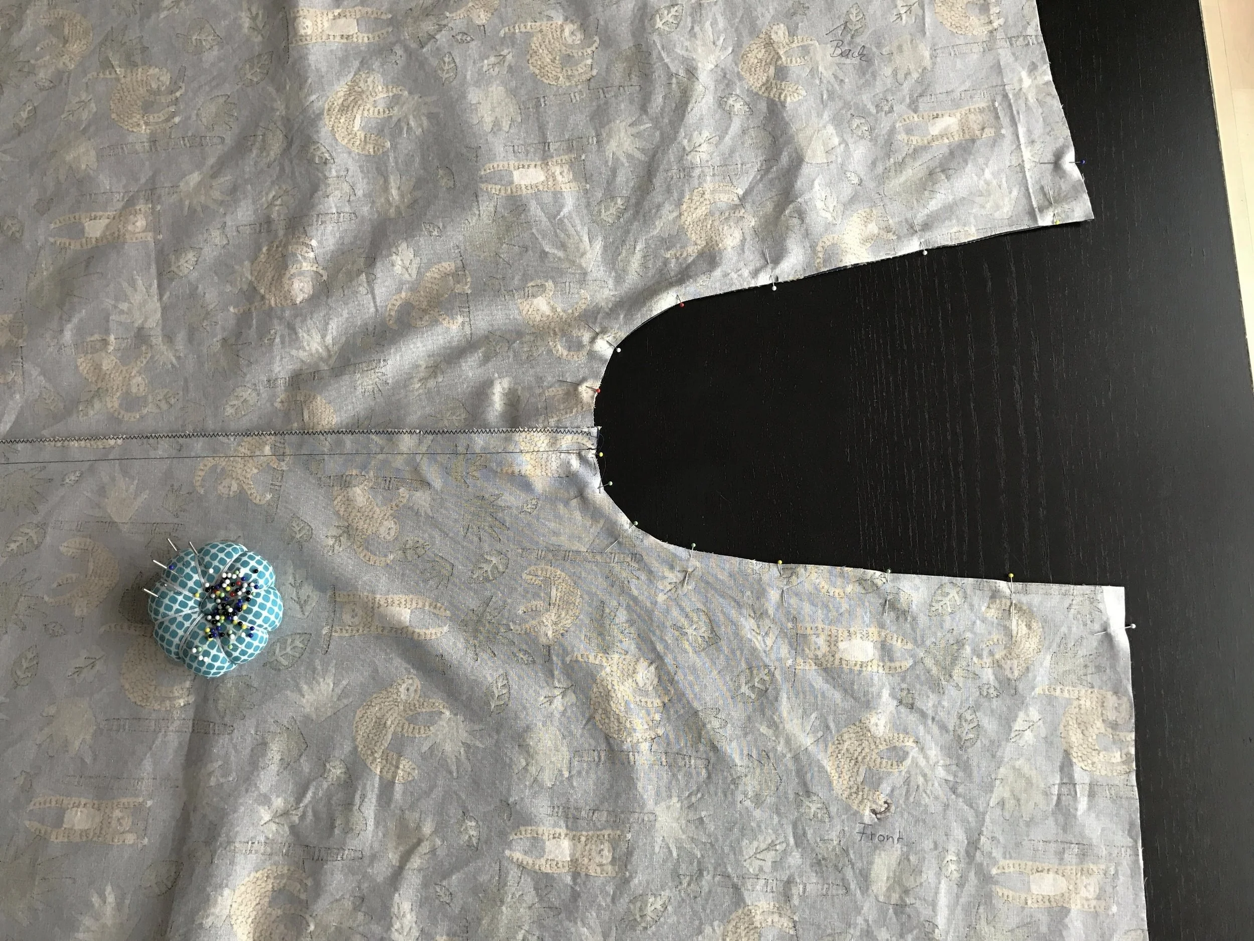 Ich habe hier wieder meinen Trick zum Umbügeln von Säumen verwendet, den ich oben erklärt habe. Deshalb seht Ihr hier die hellblauen Markierungen.