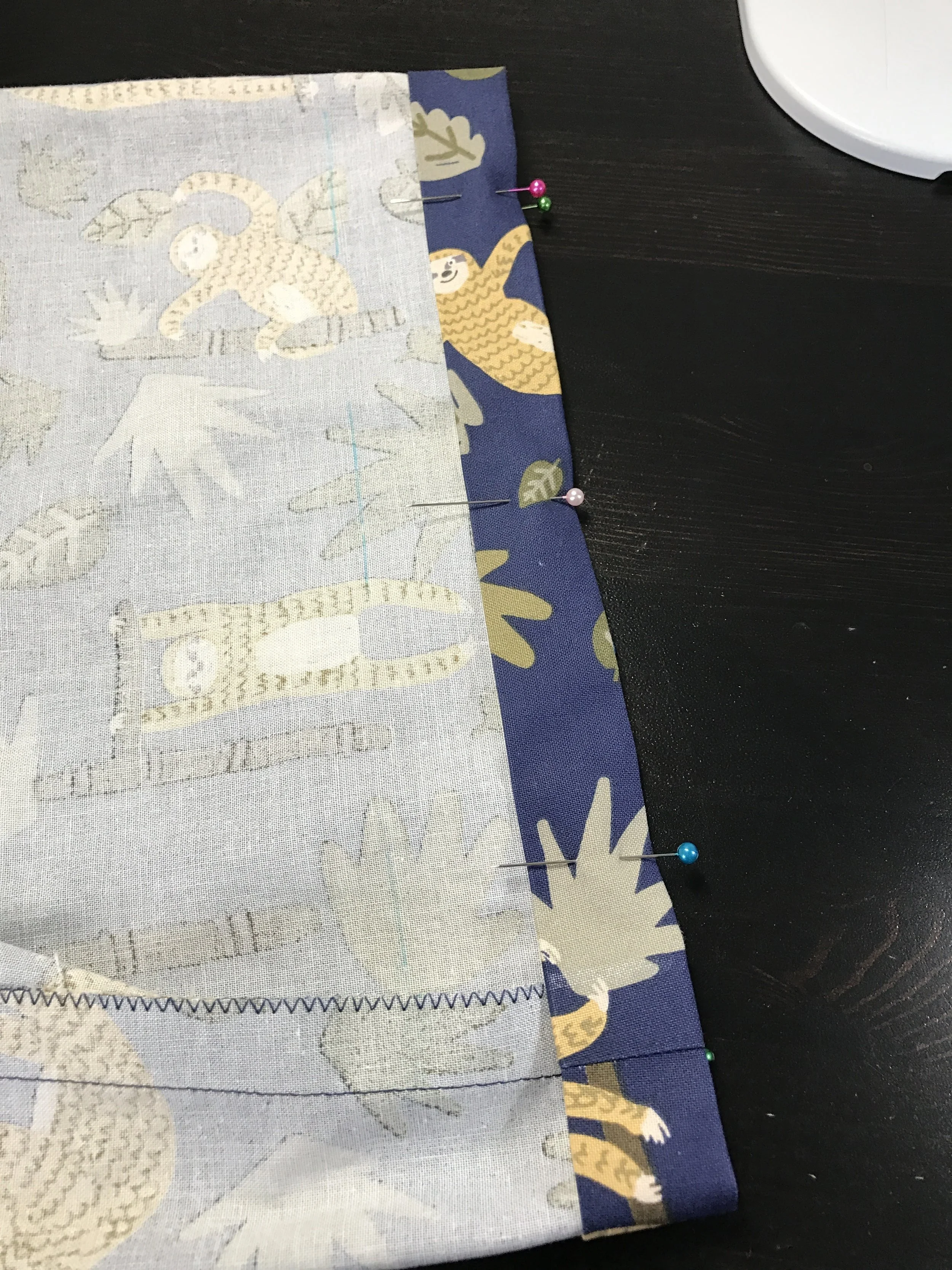 Nun steckt Ihr beide Säume mit Stecknadeln...